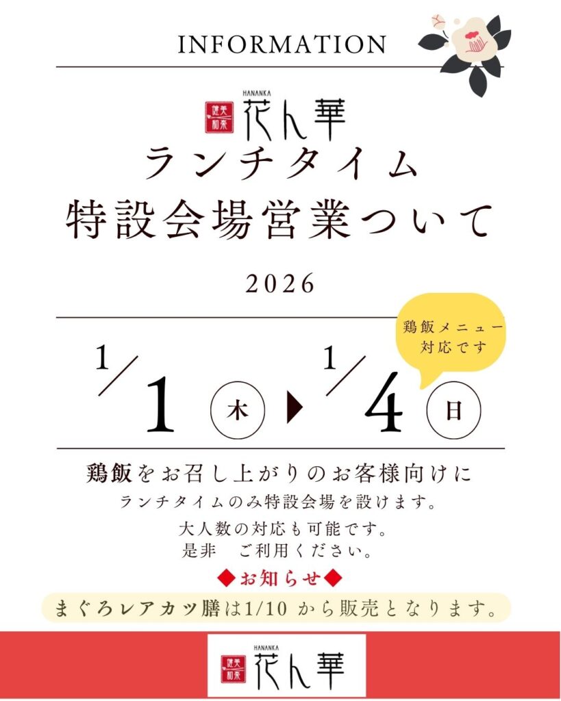 ※年始期間中は、メニューを一部限定してのご提供となります。